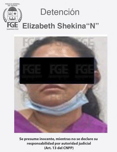 Tras la investigación de campo e inteligencia la fiscalía solicitó y obtuvo de un juez de control la orden de aprehensión en contra de Elizabeth Shekina N, misma, que fue cumplimentada para presentarla ante la autoridad que la requirió en el periodo constitucional previsto donde se definirá su situación jurídica.