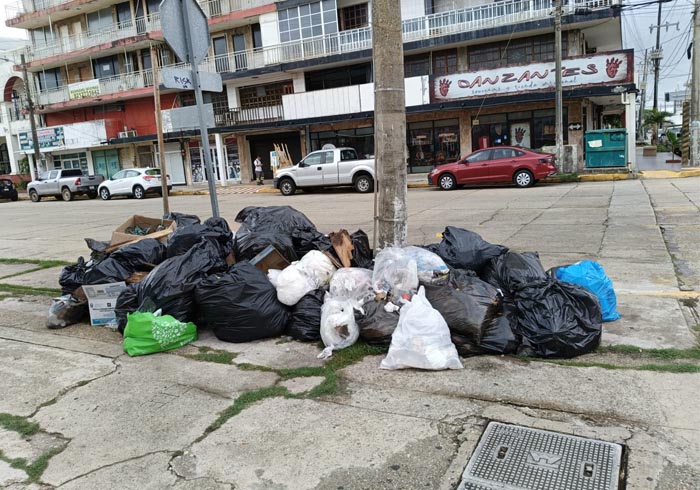 Mientras, las montañas de basura en los camellones, en las banquetas, a media cuadra del palacio municipal, crecen.