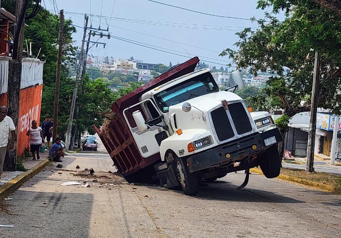 Un socavón que estuvo durmiendo durante semanas, tuvo su festejo hoy en Coatzacoalcos, atrapó a una unidad pesada y ya no quiso soltarla.