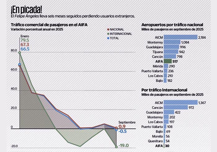 El Aeropuerto Internacional Felipe Ángeles (AIFA) comenzó a perder pasajeros de cara a las vacaciones de invierno y a meses de que arranque el Mundial de Futbol 2026.