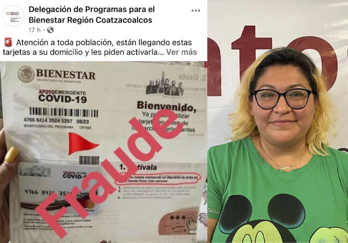 Diana Paulina Osorio del Valle, directora regional de Bienestar en Coatzacoalcos, afirmó que eso es un fraude y pidió a los beneficiarios no depositar ni entregar dinero.