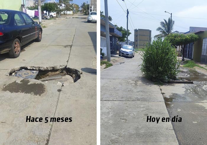La ciudadana Yaraluz Lara en sus redes sociales, se queja de la indolencia del gobierno de la ciudad, desde hace más de cinco meses, reportó un socavón, el cual nunca fue atendido por ninguna autoridad municipal y hoy luce con maleza crecida.