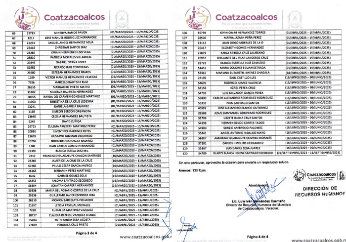* Con solo cuatro años en el ayuntamiento de Coatzacoalcos, amarraron plaza definitiva; empleados de 10 y 20 años tendrán que esperar; 130 bases, según documento de Recursos Humanos