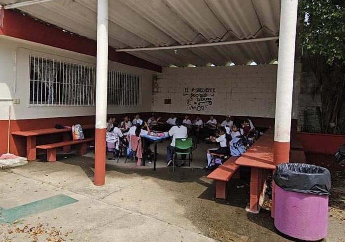 Durante este lunes, los alumnos tuvieron que tomar clases afuera de sus salones, y en áreas donde había sombra, esto por la falta de energía eléctrica.