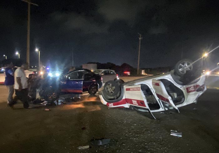 De acuerdo con testigos, el percance ocurrió en el cruce con la avenida Jirafas, cuando el taxi, un Renault Kwid, presuntamente fue impactado por alcance por un automóvil particular Chevrolet Aveo, con placas YLM-773-A, que circulaba a exceso de velocidad.