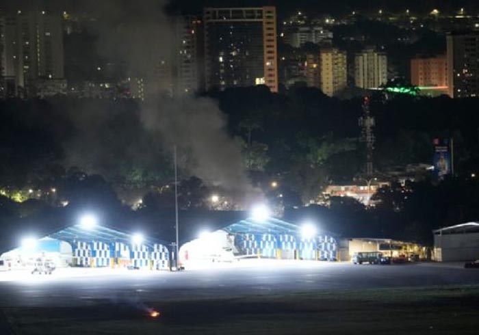 También se pudo ver humo saliendo de un hangar en una base militar en Caracas. Otra instalación militar en la capital estaba sin electricidad.