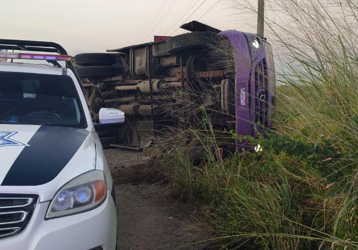 Cosoleacaque, Ver. — Una intensa movilización de cuerpos de auxilio se registró la mañana de este viernes en la carretera Coatzacoalcos–Minatitlán, a la altura del tramo conocido como Las Matas, luego de un aparatoso choque que terminó con la volcadura de un autobús de transporte público y una camioneta cargada de cocos fuera de la cinta asfáltica.
